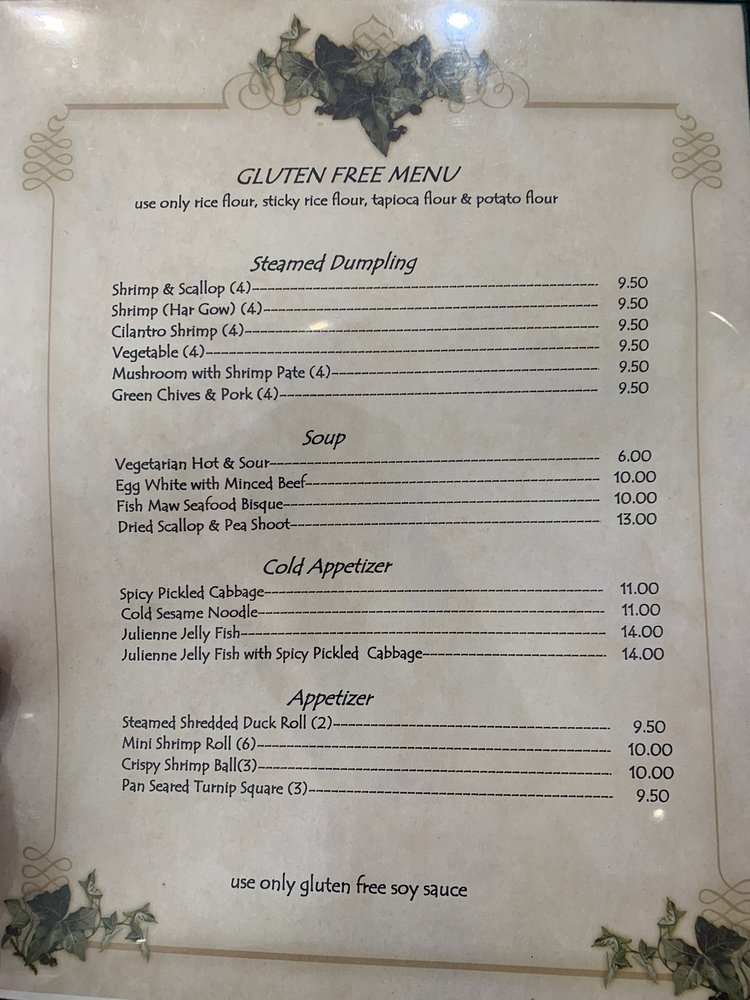 Cafe Evergreen in New York City's Upper East Side offers a casual yet classy dining experience, with a menu full of Chinese delicacies. From cold appetizers like Shredded Chicken with Sesame Sauce to a variety of soups like Hot and Sour Soup, the restaurant caters to every taste. Customers rave about the gluten-free options, quick service, and the overall quality of the food. The large selection of vegetarian and meat-based appetizers provides something for everyone, and the lunch specials offer great value. With positive reviews highlighting the delicious flavors and generous portions, Cafe Evergreen stands out as a go-to spot for authentic Chinese cuisine in the area. Whether dining in or ordering takeout, this restaurant consistently exceeds expectations with its tasty dishes and friendly service.